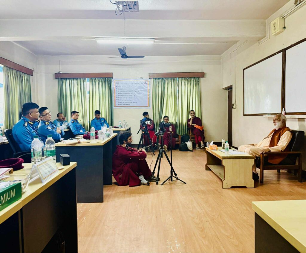 उच्च पदस्थ प्रहरीलाई तनाव व्यवस्थापन प्रशिक्षण दिदै बोधिसत्व स्वामी आनन्द अरुण